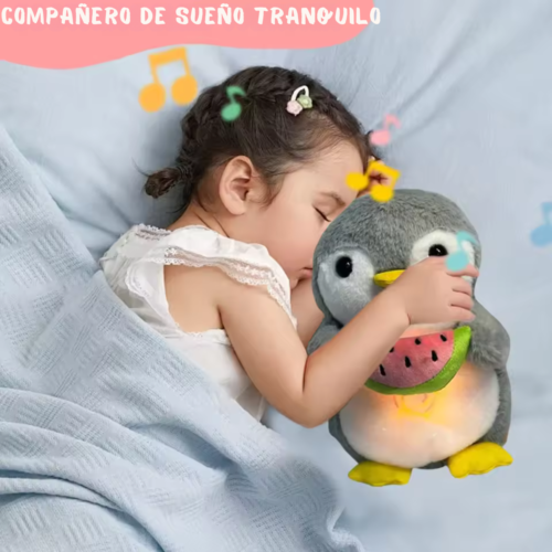 Pinguino Con Efecto de Respiracion A Cable; Musical y Luminoso: Compañero de Sueño para Bebés, Anti Estres